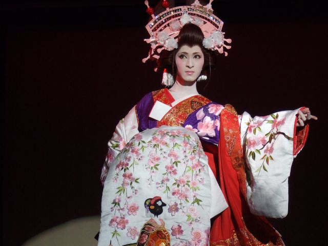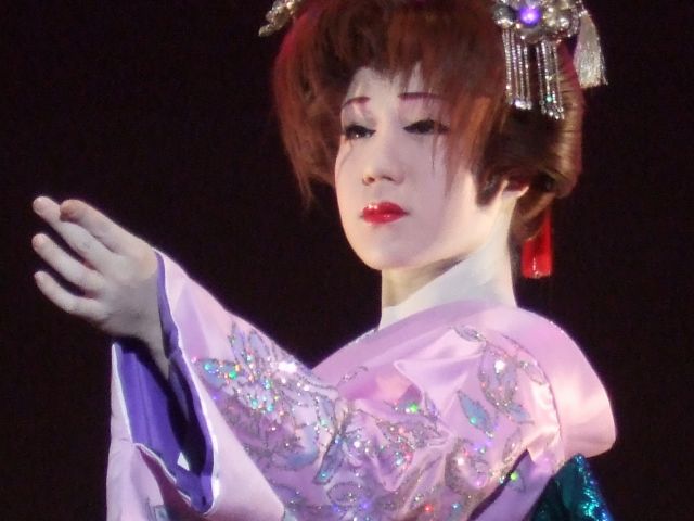 16日夜の部 五人花魁ショー 桜春之丞(手前)、小桜真(左)、小桜京(右)